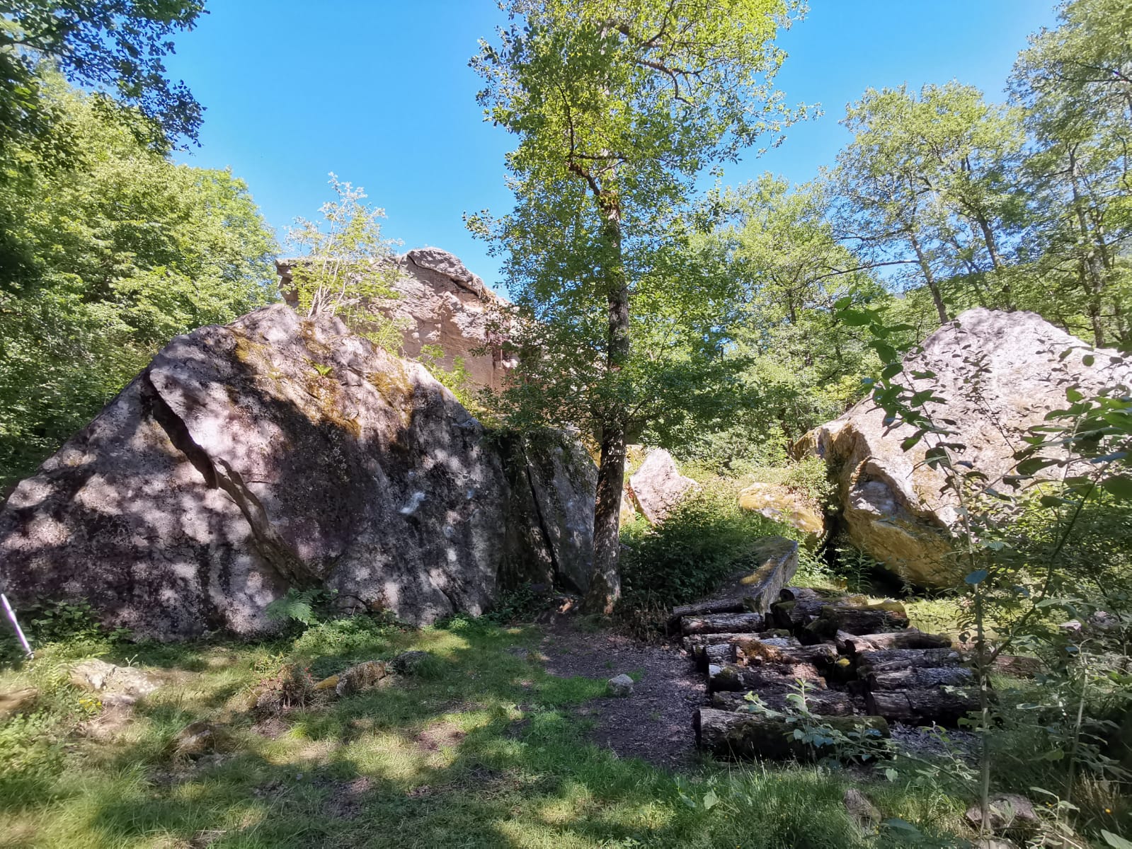 "Endroit magnifique où l'on peut escalader des blocs d'escalade. Sur les blocs il y a des niveaux de difficulté (parfois) et je vous donne l'ordre: -jaune -verd -bleu -orange -rouge -violet Pensez a prendre un crash pad pour si vous chutez, et du matériel d'escalade car il y a des blocs hauts et ça peut être dangereux même avec du matériel d'escalade. Accessible par randonnée depuis les forges d'Orlu, ou de Orlu, ou par le parking de l'aire des blocs. Distances a pied depuis le GRP (balisé orange-rouge): Distance depuis les forges d'Orlu : 2,3km Distance depuis Orlu : 1km Distance depuis Orgeix: 4,8 km (je crois) Distance depuis Ax-les-Thermes: 9,8km (je crois)"
