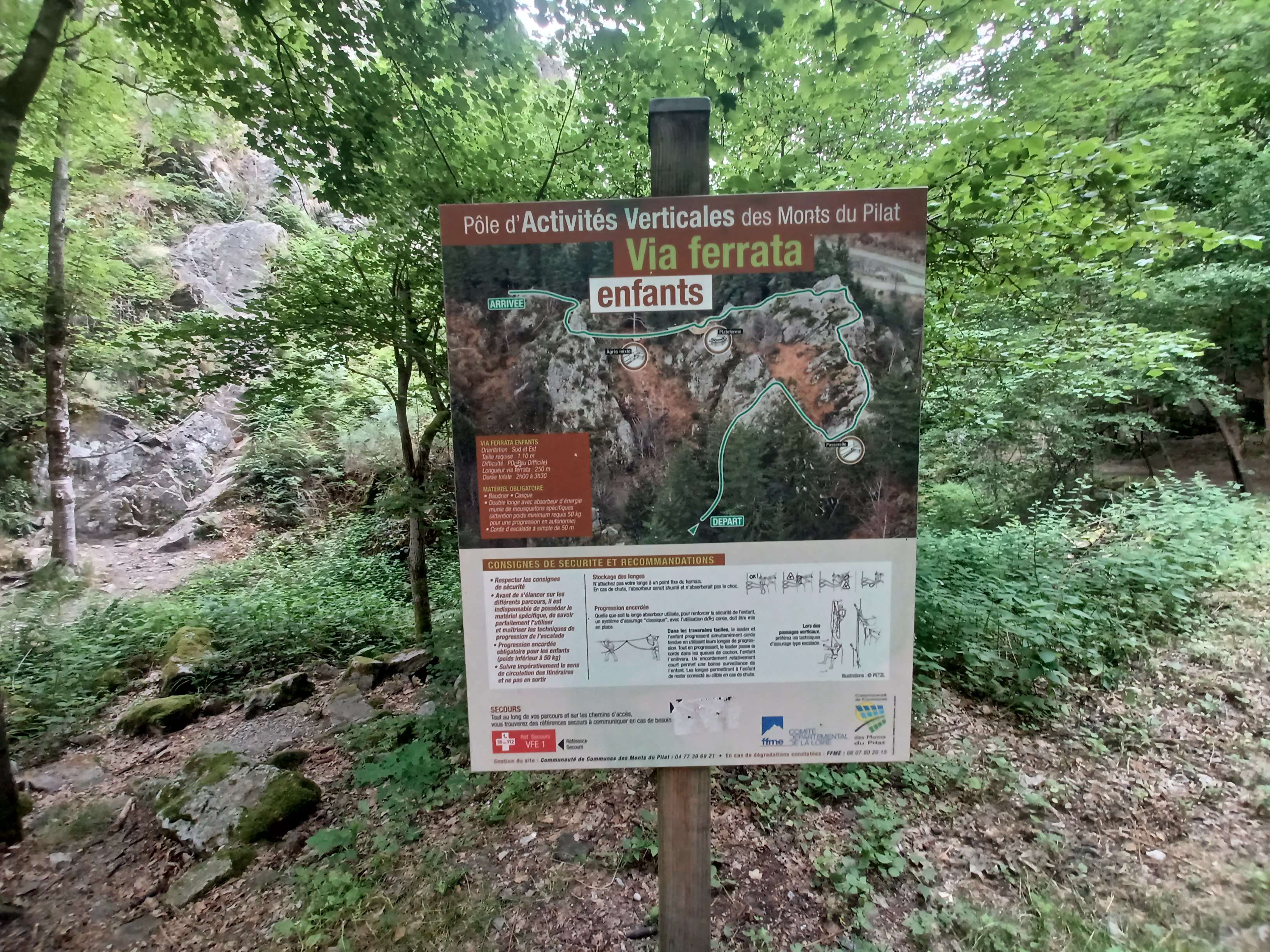 Posté le 25/10/2020 à 18:36"En bref, via ferata très sympa et accessible à tous. Via ferata au départ du Gouffre D'enfer très sympa. Accessible par Planfoy, possibilité de louer du matériel directement à Planfoy. Niveau modéré, deux parcours dont un pour enfants. Équipements obligatoire : harnais et longe, le casque n'est pas de trop, chaussures adaptées, les parois peuvent être glissante. Le finish avec la tyrolienne est top (possibilité de finir le parcours sans). Le cadre est magnifique, le parcours est diversifié sans pour autant mettre en difficulté."