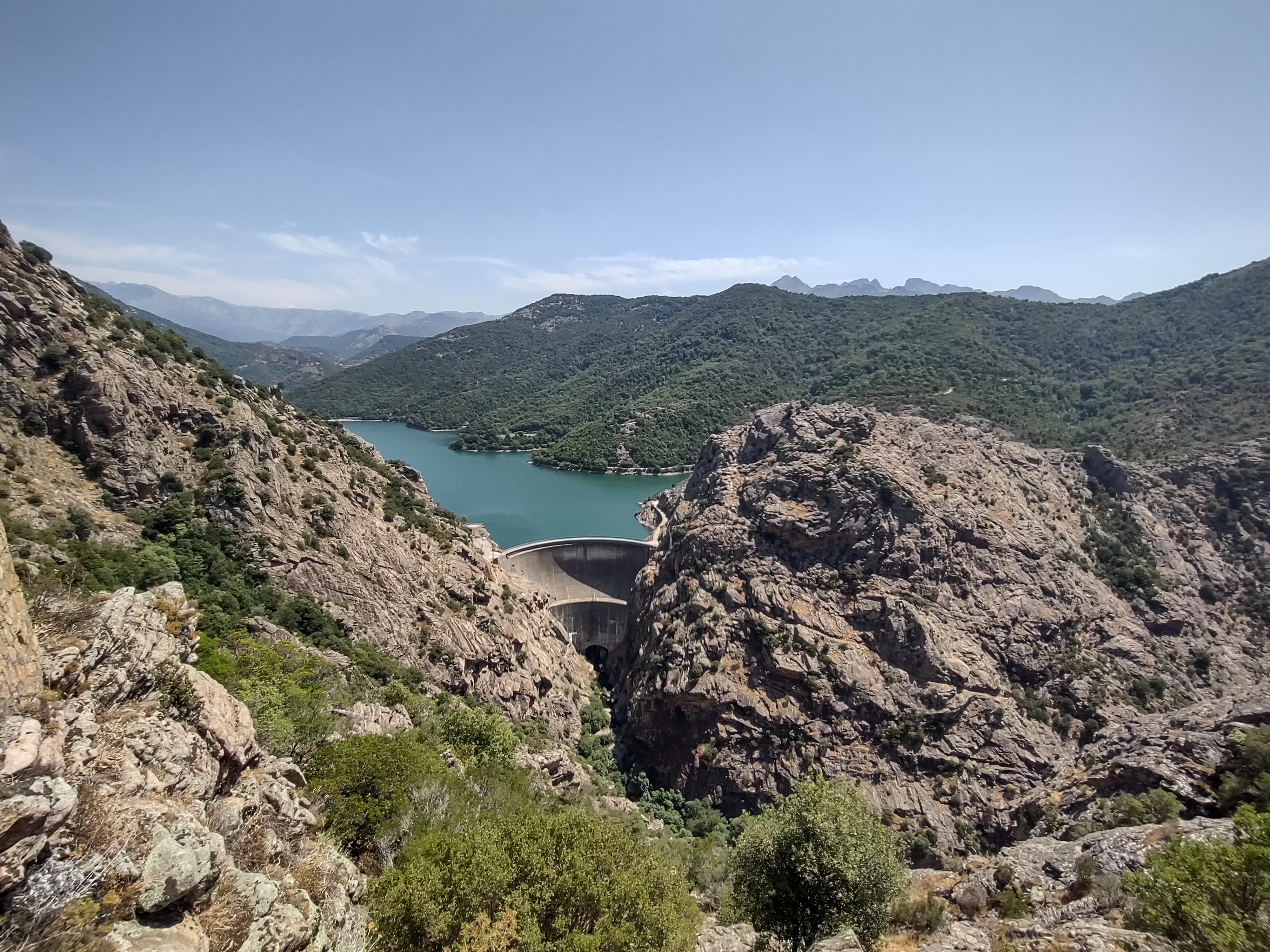 Des gorges sauvages dominées par un barrage voûte surprenant, un plongeon étourdissant balayé d'un air chaud et parfumé des senteurs du maquis. Le départ de la via ferrata pour les amateurs de sensations fortes.