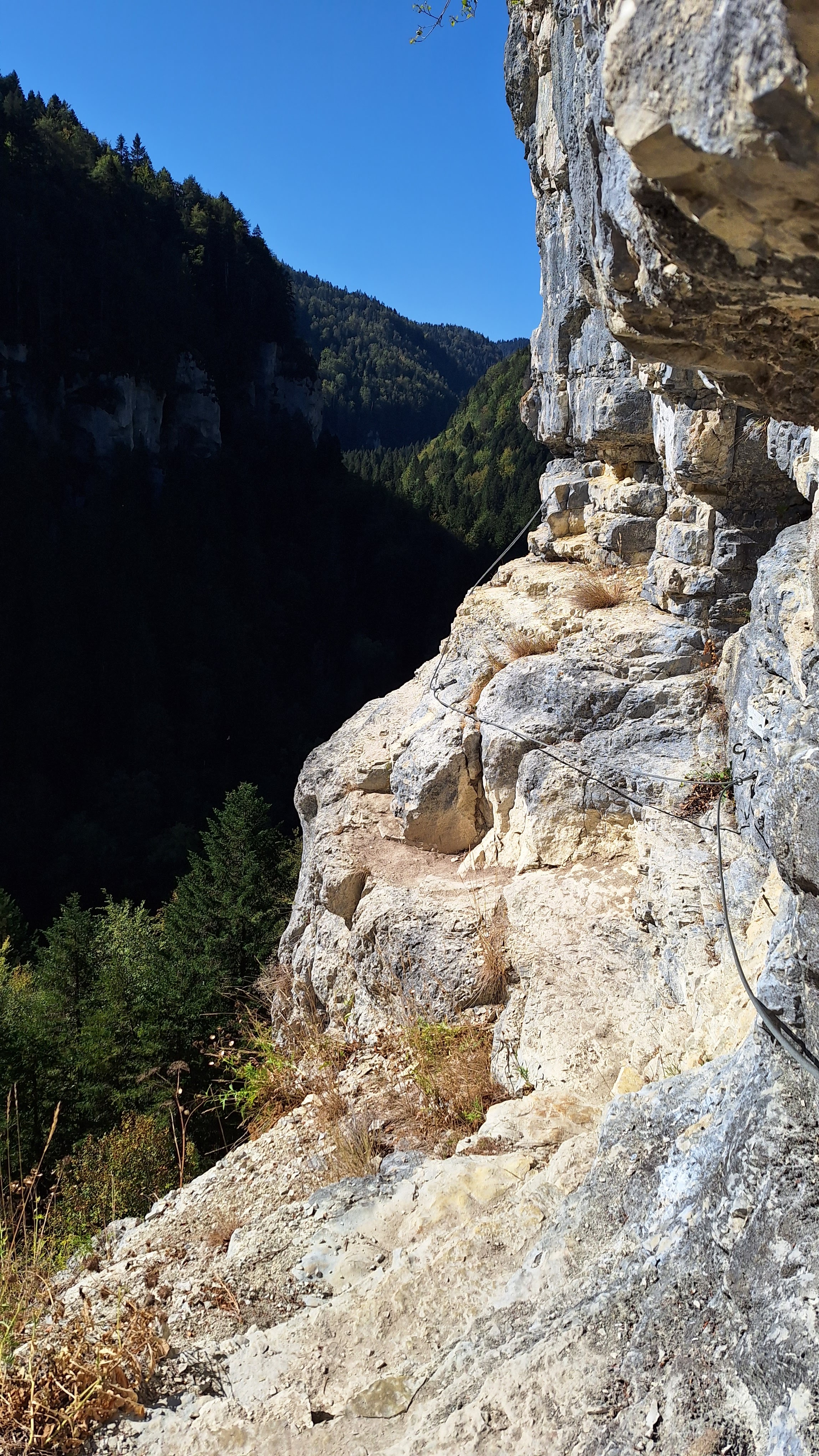 Posté le 15/09/2017 à 05:24" Jolie via ferrata dans la vallée du Doubs proche de la frontière suisse. Vous devez être en forme et un équipement complet est absolument nécessaire. La vallée se prête également aux randonnées le long de la rivière du Doubs. Paysage magnifique. "