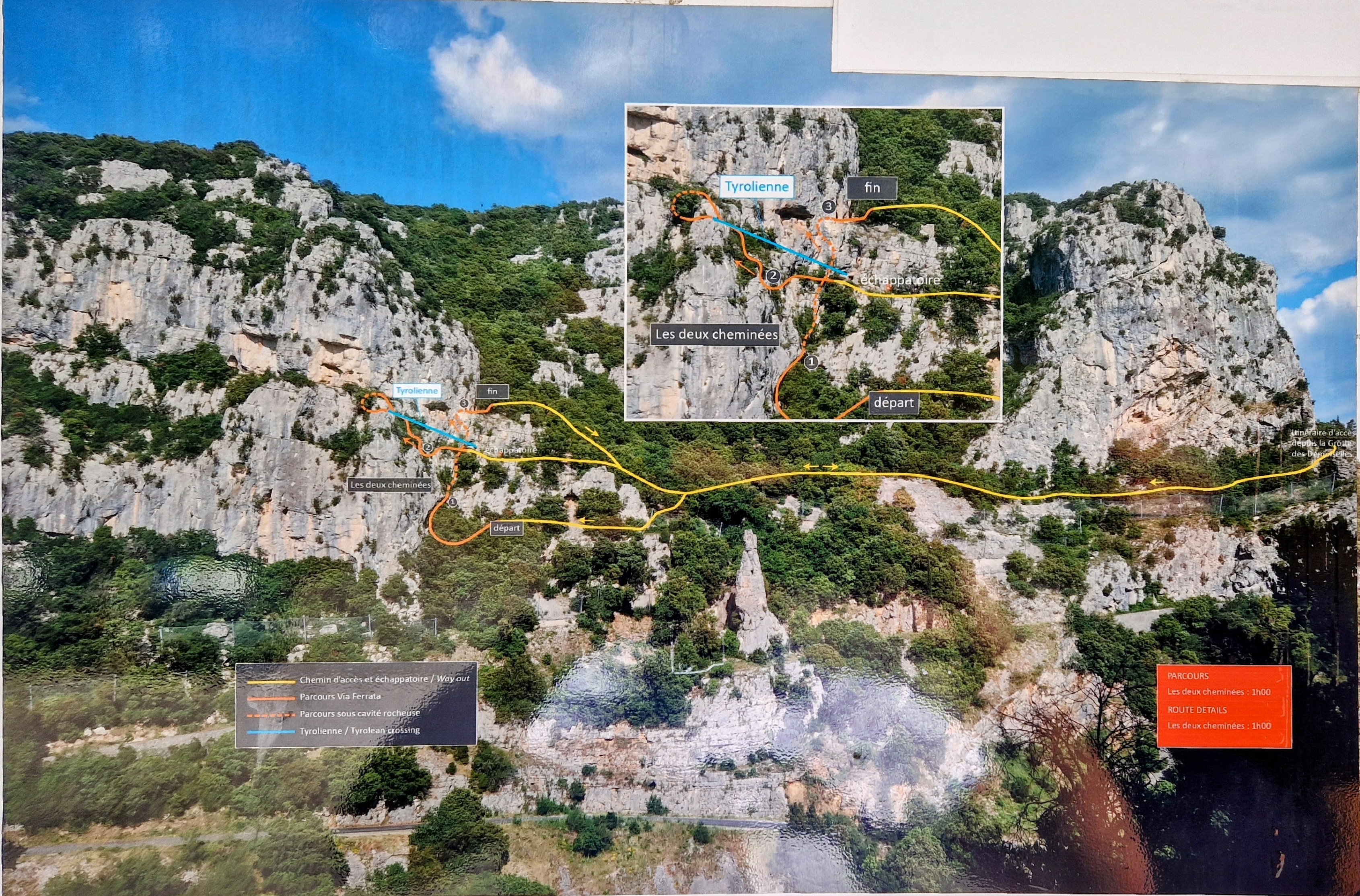 un vrai casse-tête, des grottes par ici, des interdictions par là et des chemins pas très bien indiqués, bon courage, en tout cas vous allez passer un bon moment (Attention ! dans le premier rappel jusqu'au fond de la grotte et dans la troisième partie la baume du soleil le matériel est mal entretenu à cause de la rouille et de l'usure et il y a même une partie où la ligne de vie a été remplacée par un bout de corde)